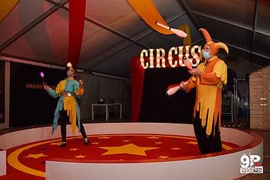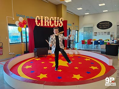 Prenez-vous au jeu avec l’initiation au jonglage ! Un moment mémorable à partager entre collègue ! Des nombreux décors lumineux accueillent vos convives et les plongent dans l'ambiance. Que serait le cirque sans les grappes colorés de ballons à l’entrée du chapiteau ? L'atmosphère est magique, et vous pouvez presque entendre la musique entraînante de la parade d'ouverture.