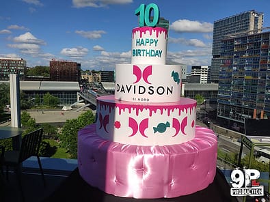 Imaginez une structure imposante, entièrement personnalisable aux couleurs de votre entreprise. Avec ses couleurs vives, son logo fièrement affiché et ses accessoires assortis, ce gâteau géant devient un véritable élément de décor à part entière. Chez nous, nous prenons en charge la création de ce gâteau de A à Z, en nous assurant qu'il corresponde parfaitement à vos attentes, à la charte graphique de votre entreprise ou au thème de votre événement.